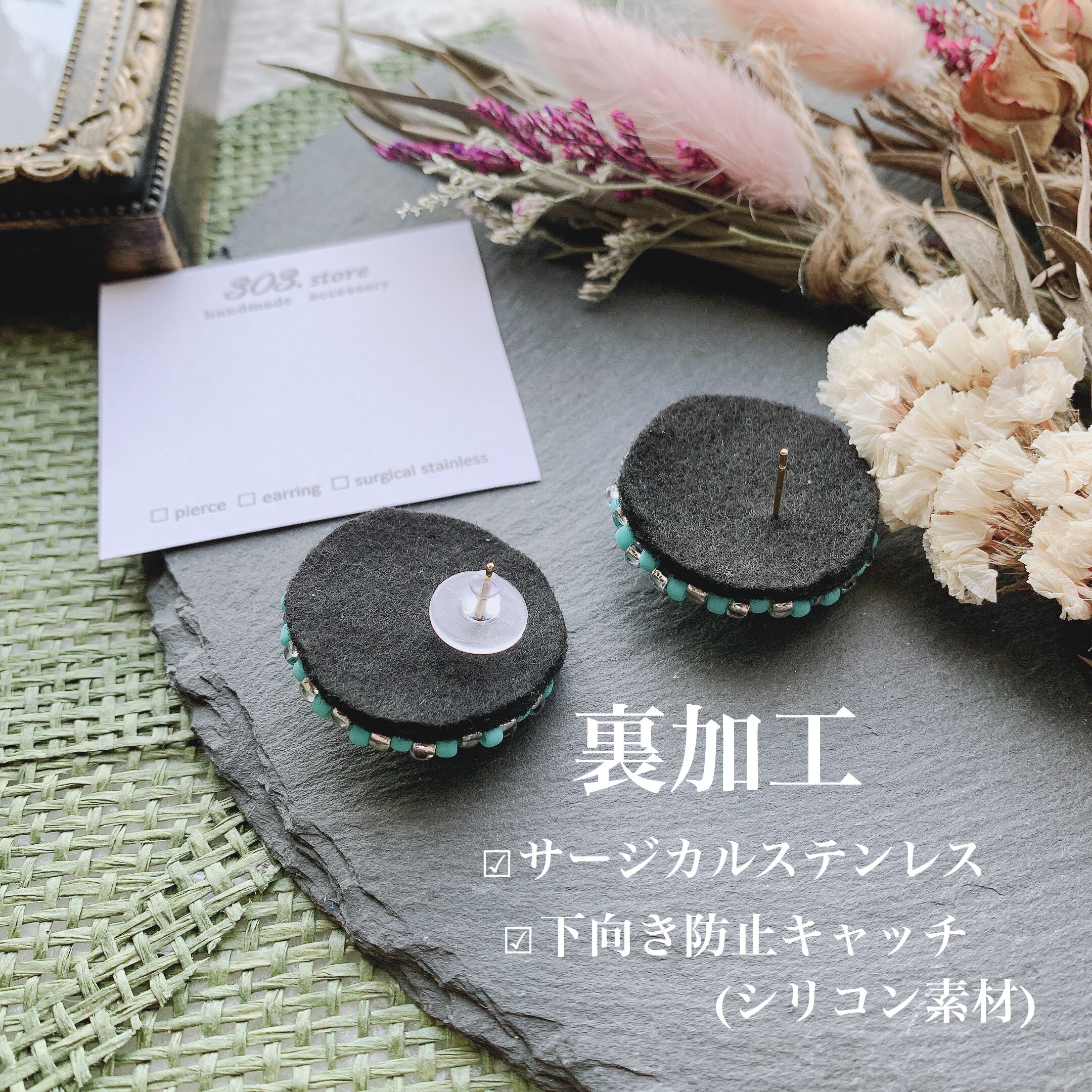 耳たぶに触れる部分は、フェルト加工をしていますので安心ですᵕ̈*ᵕ̈*ᵕ̈