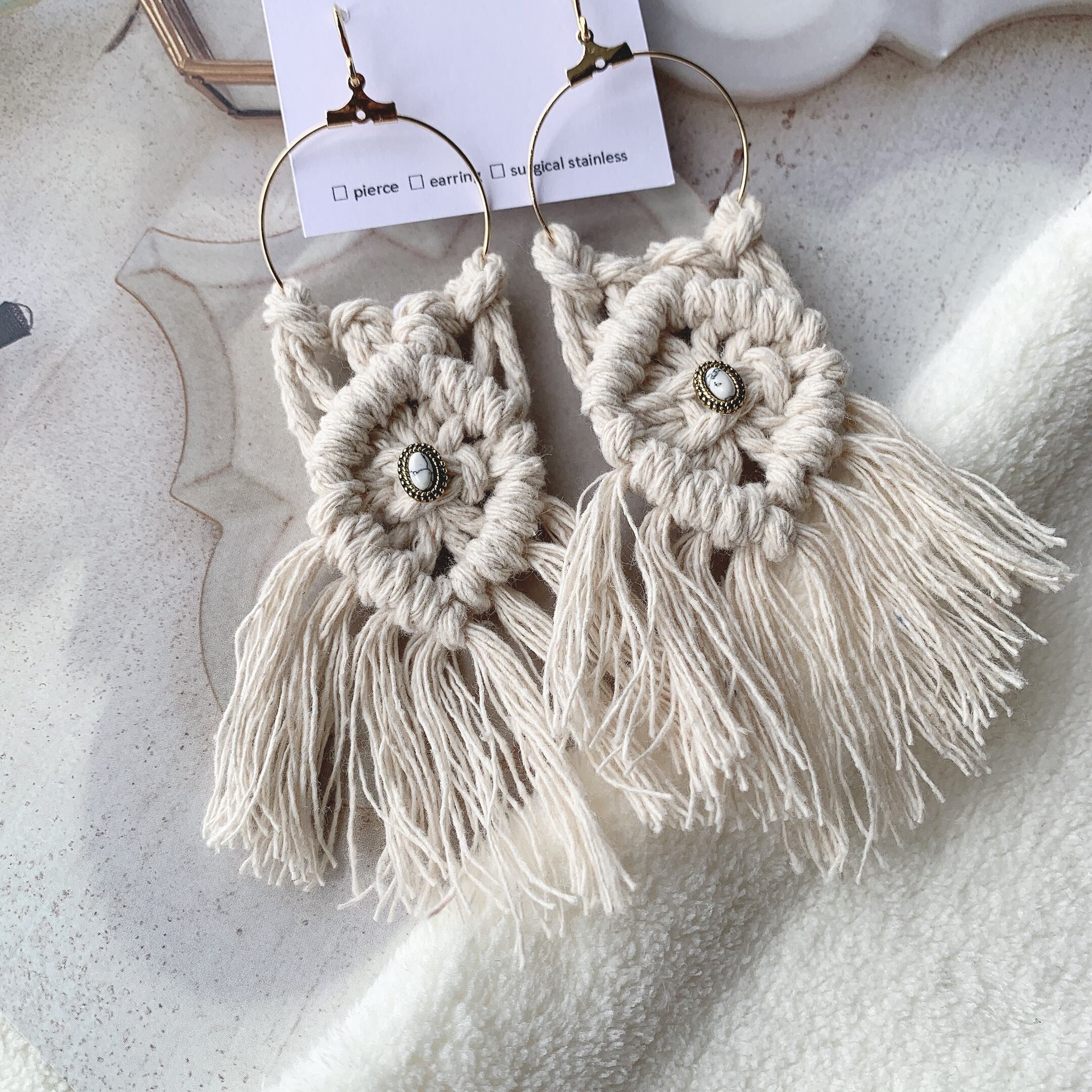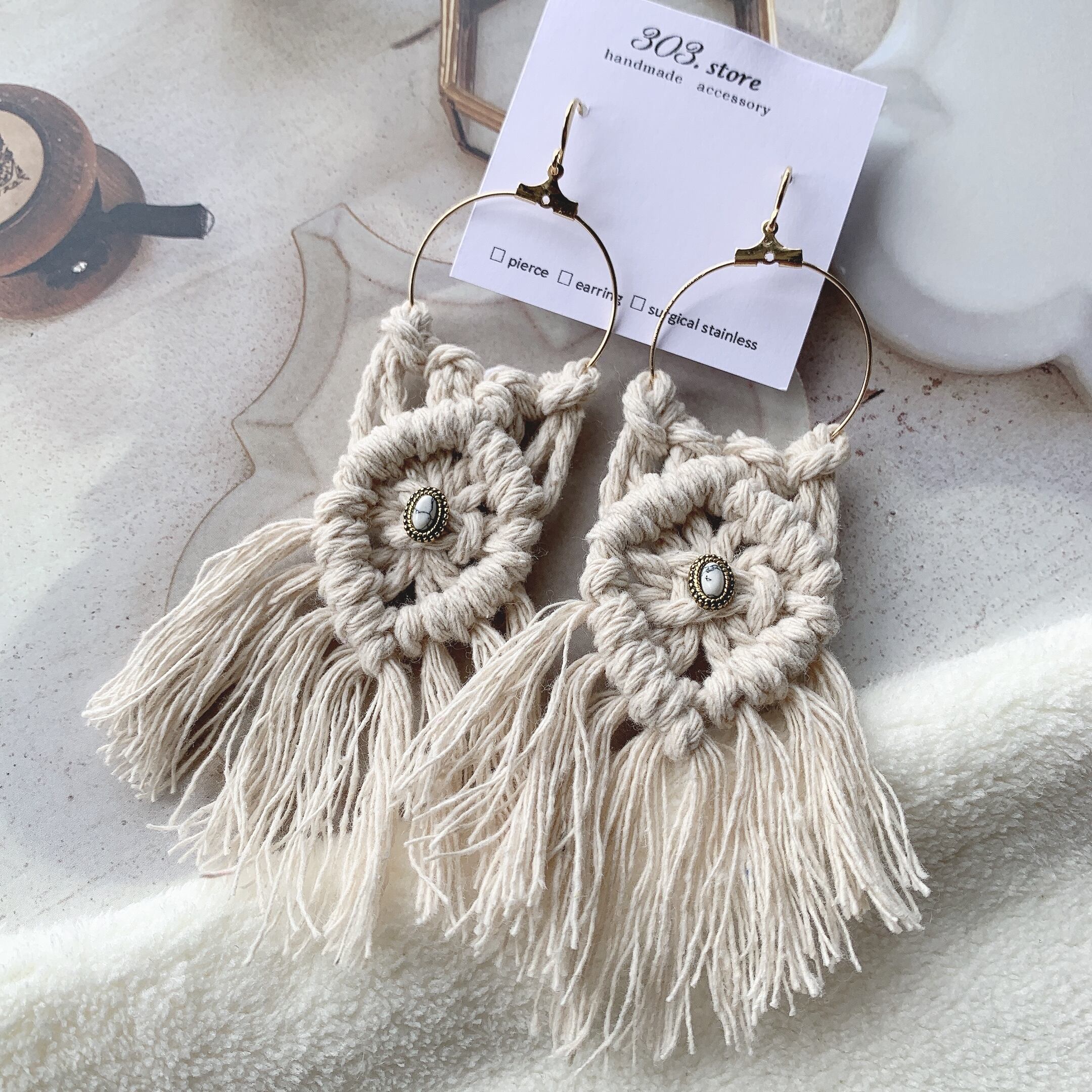 一つ一つ手編みで作ったマクラメピアスorイヤリング