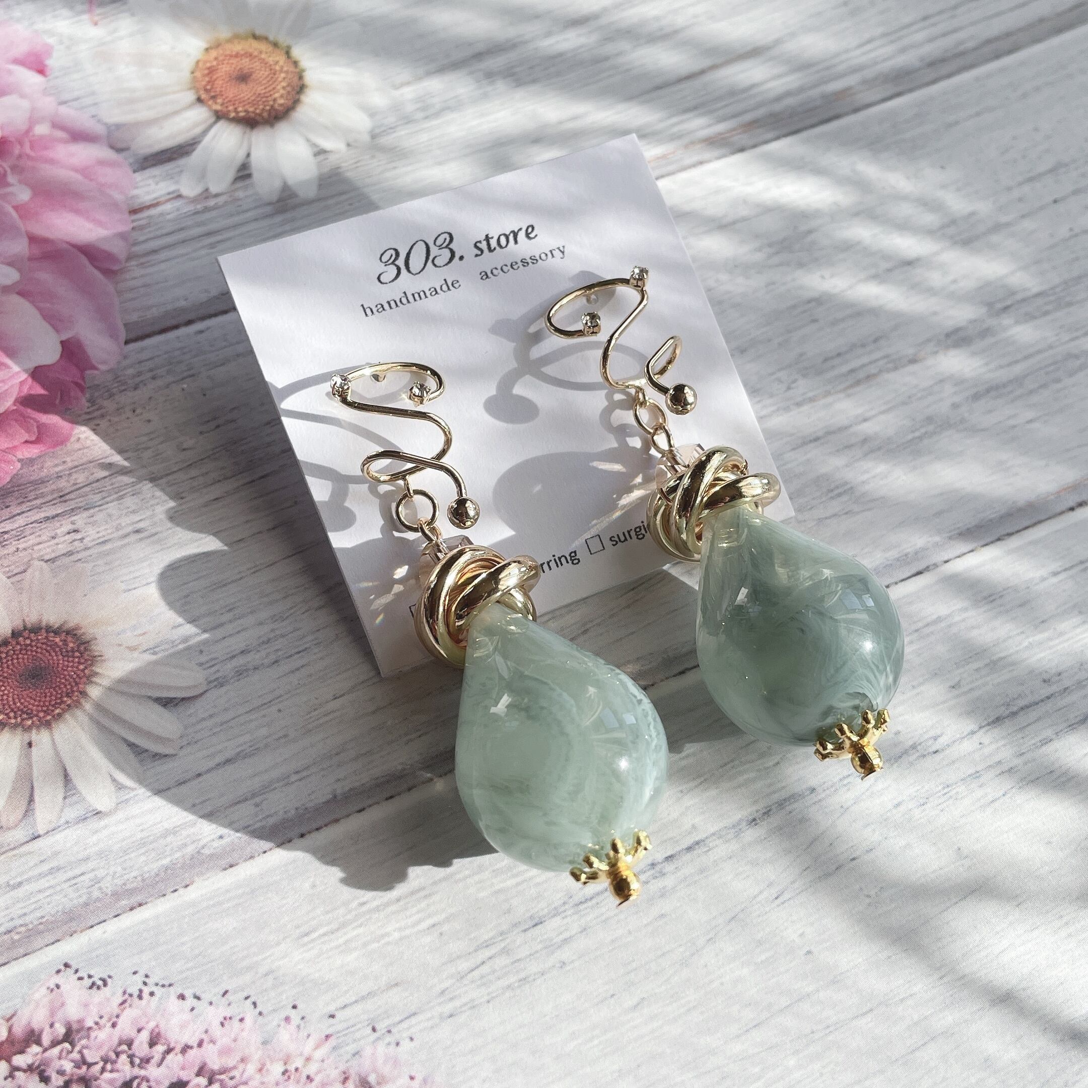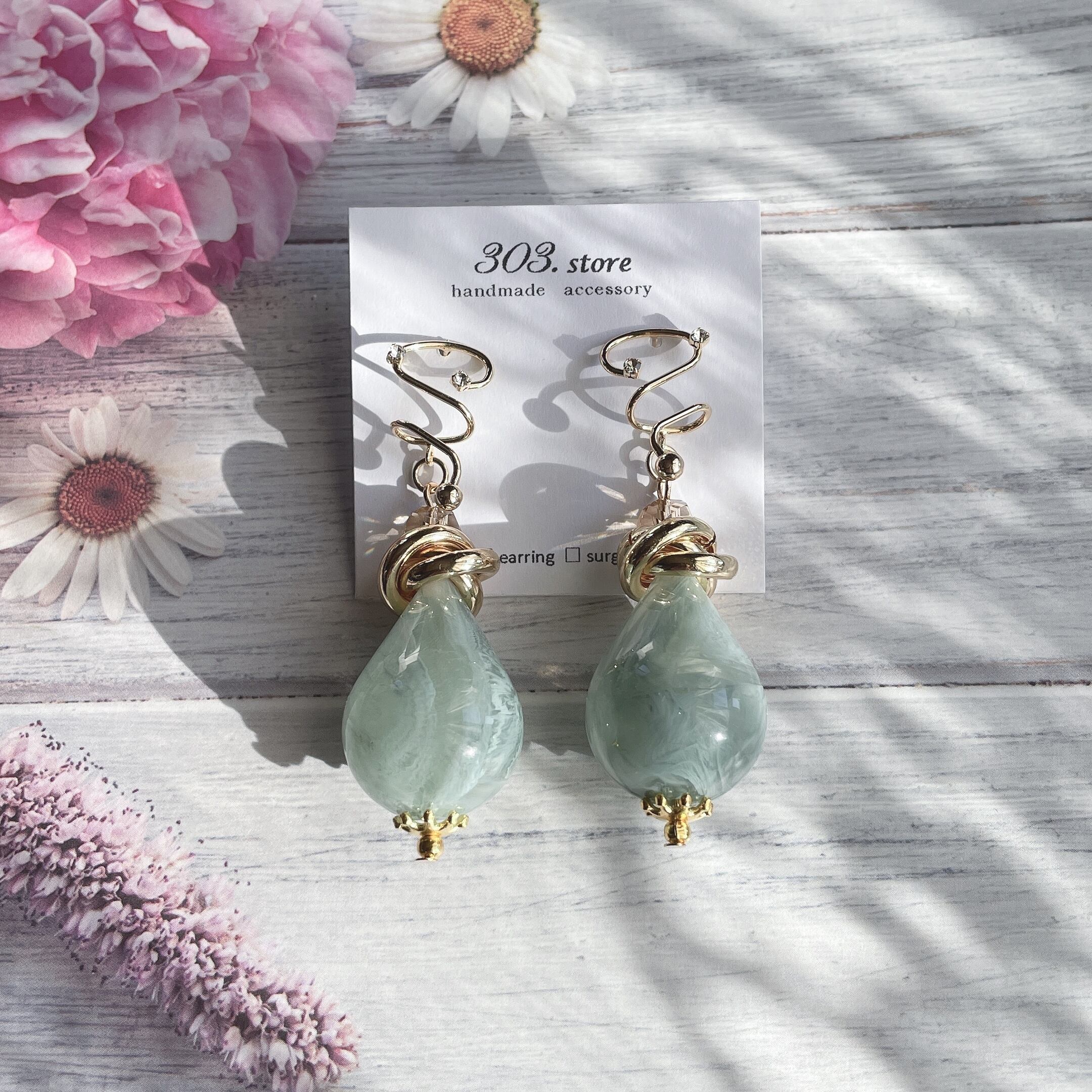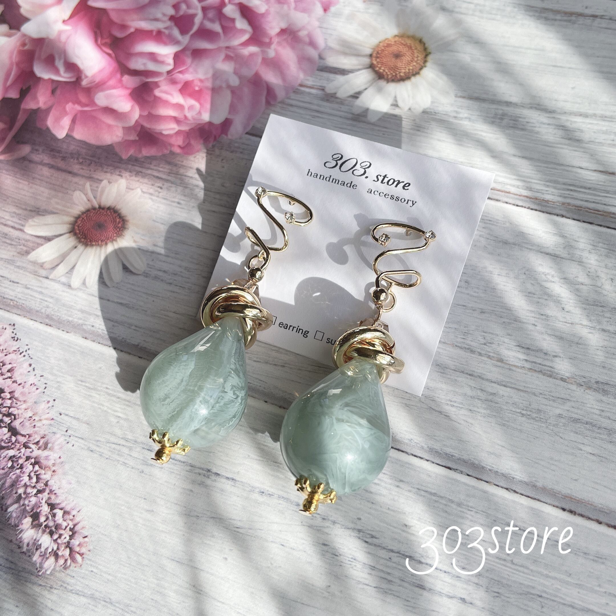 小粒ジルコニアストーンが可憐に輝く、K18gpのデザインピアスを使っています。