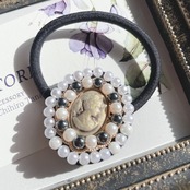 ガラスパールビーズでひとつひとつ刺繍したヘアゴムです。