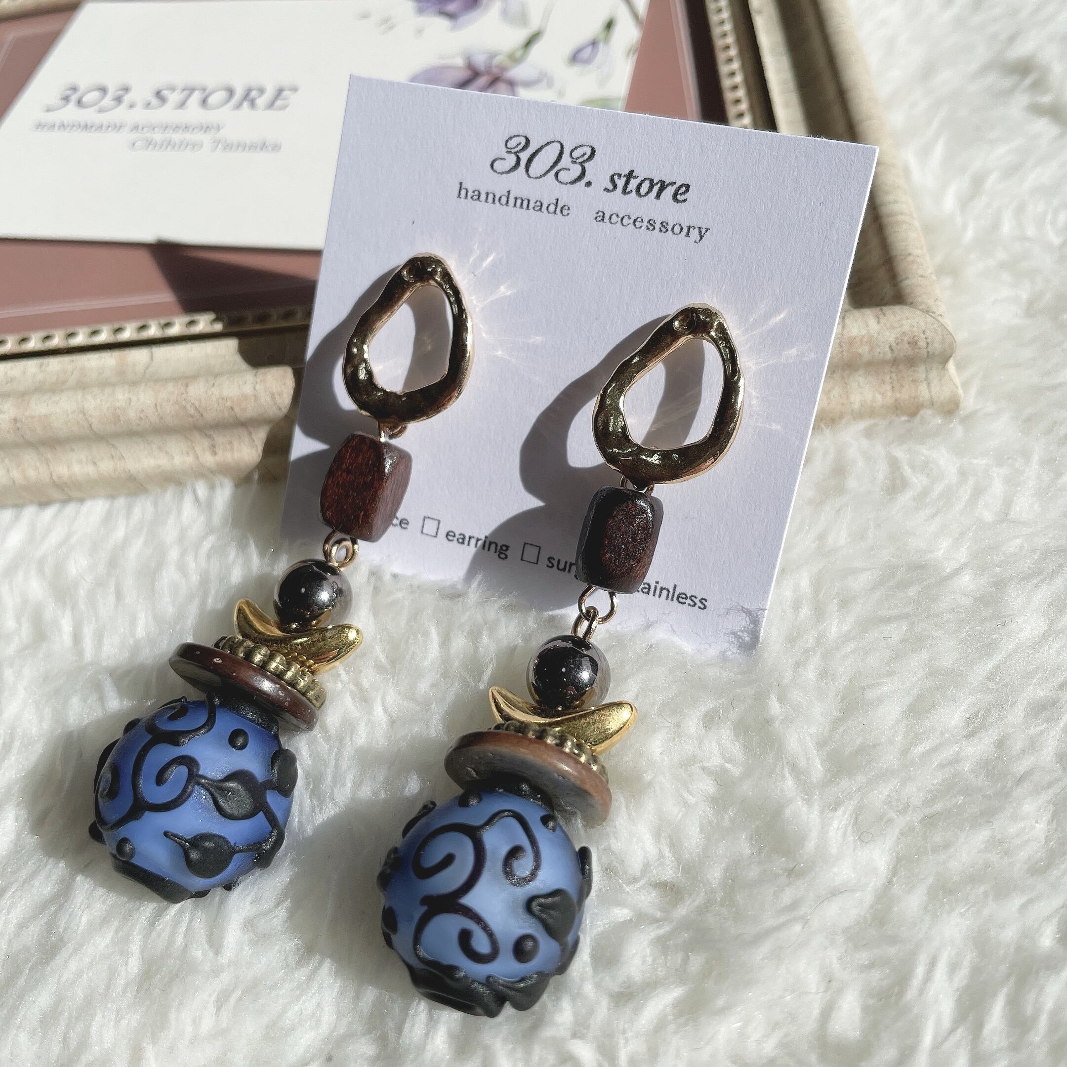 ウッドビーズ、ココナッツビーズを加えてカジュアルに◎