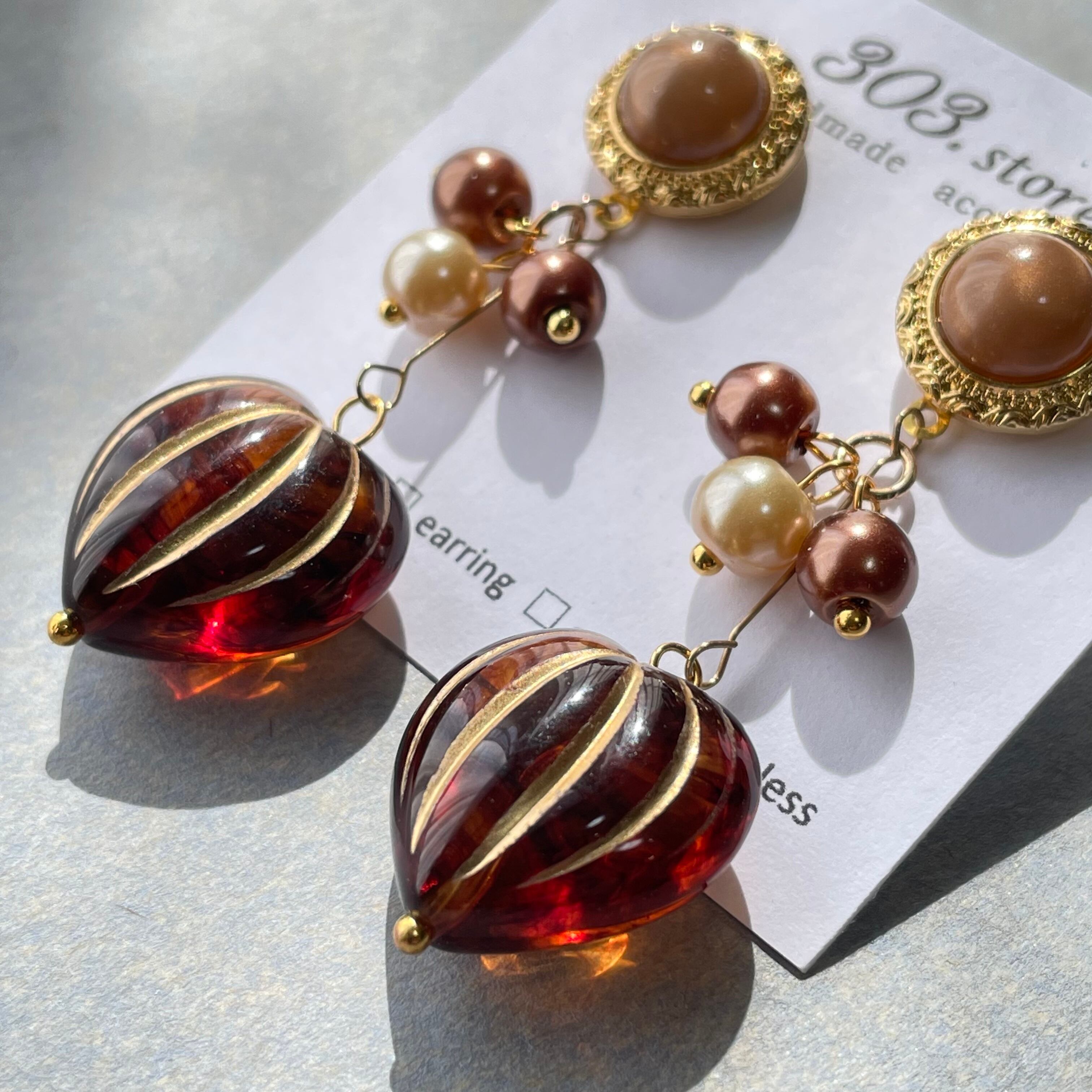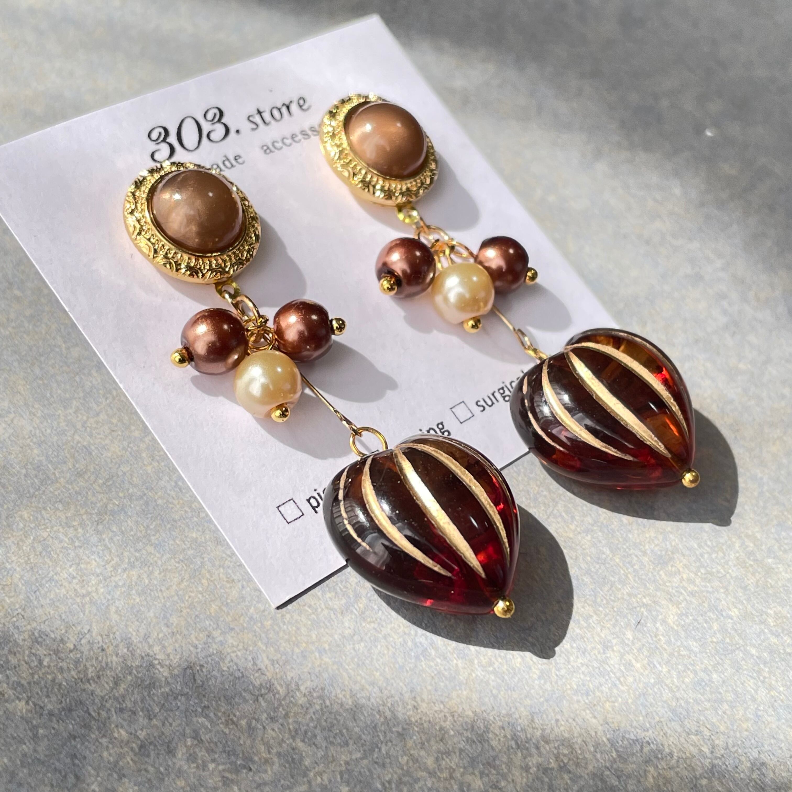 ぷっくりハートのボタンピアス 【1131】ブラウン