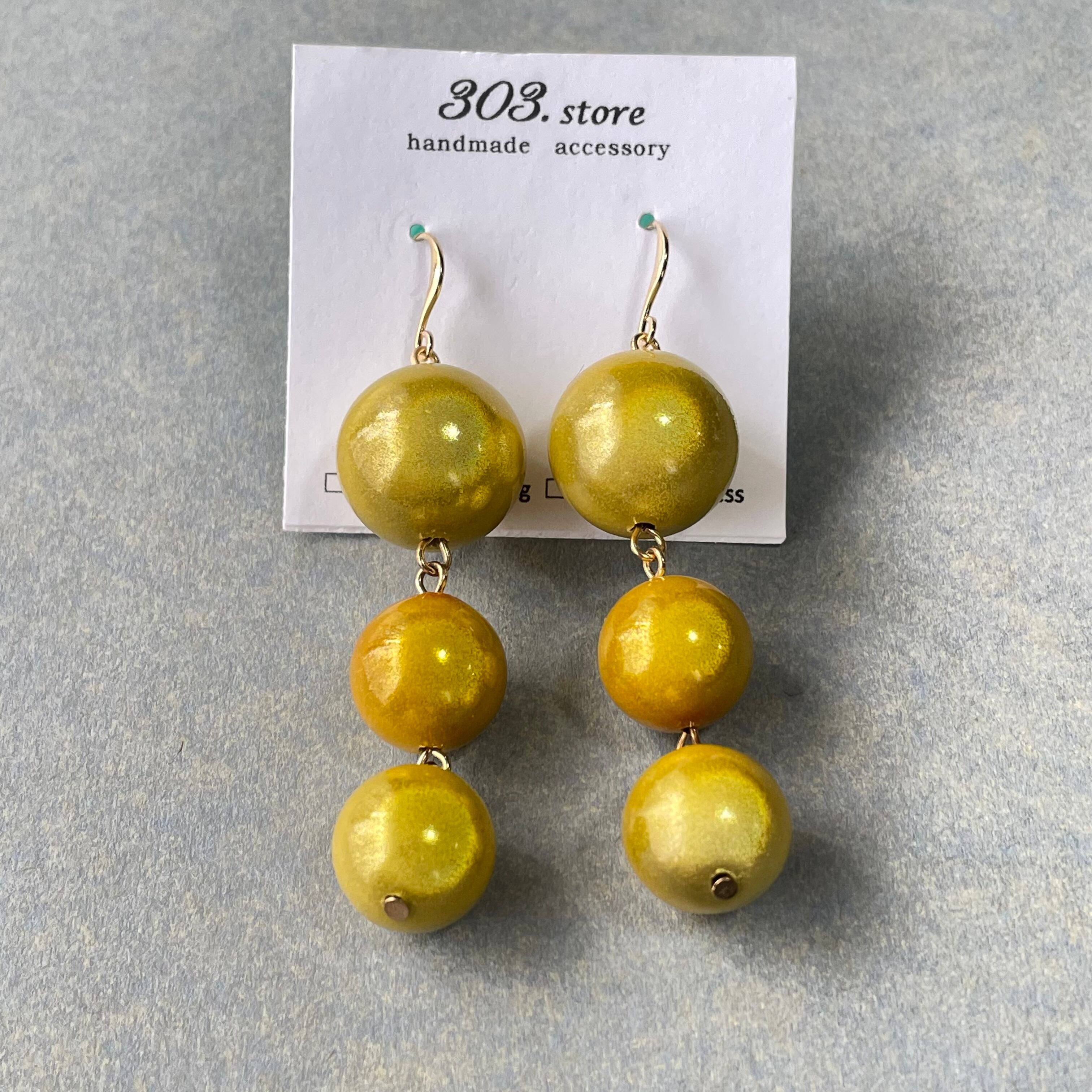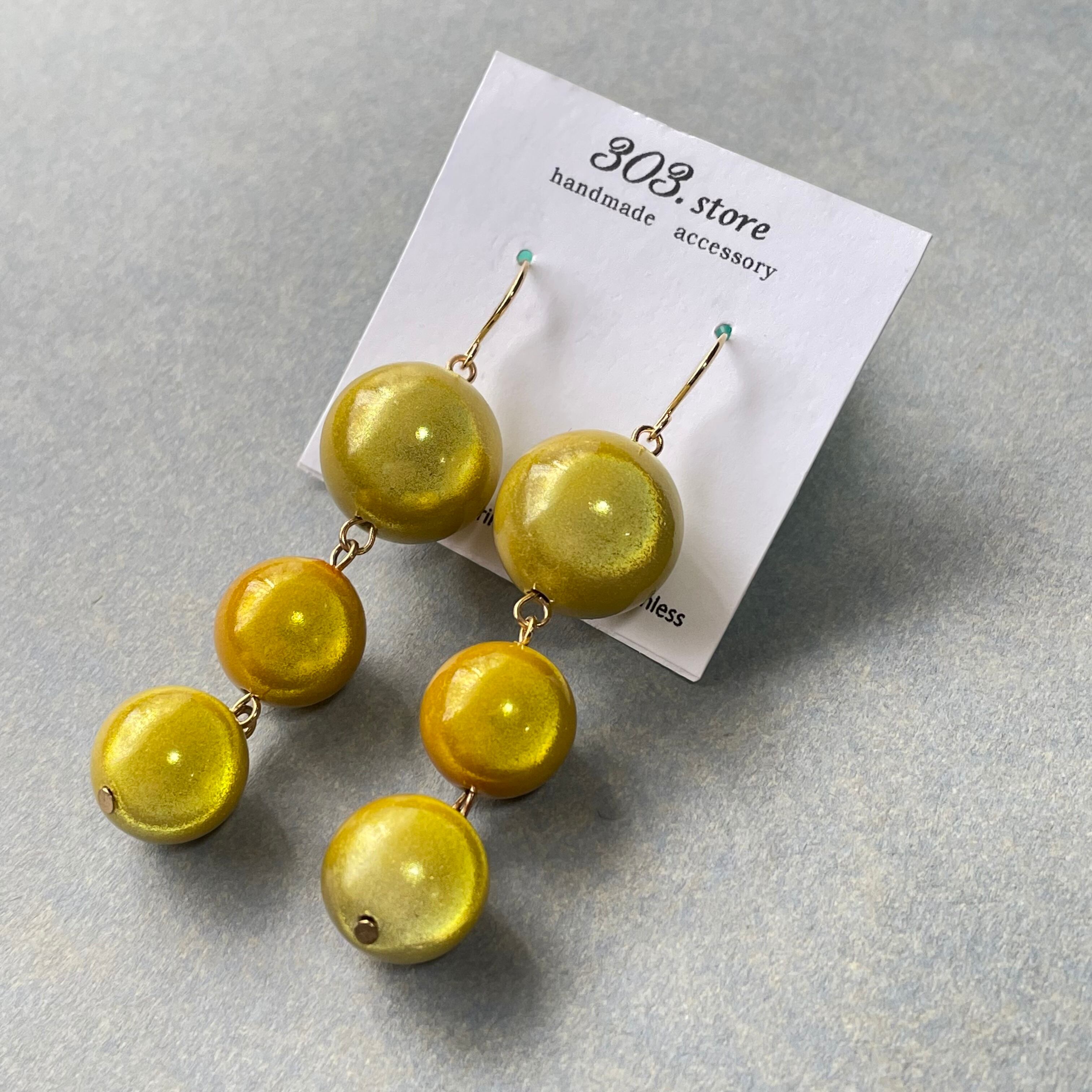ミラクルビーズ 3連ピアス【1139】イエロー