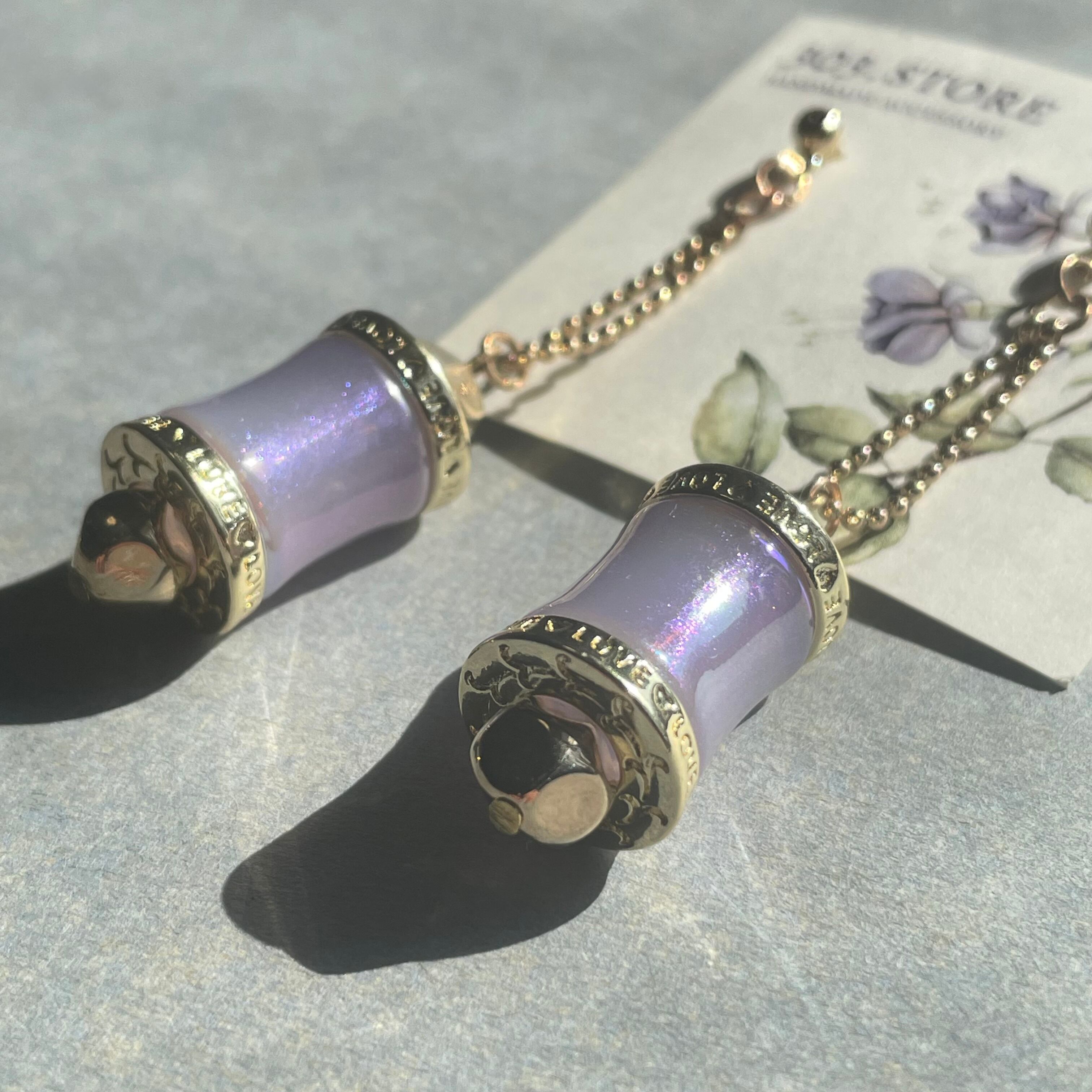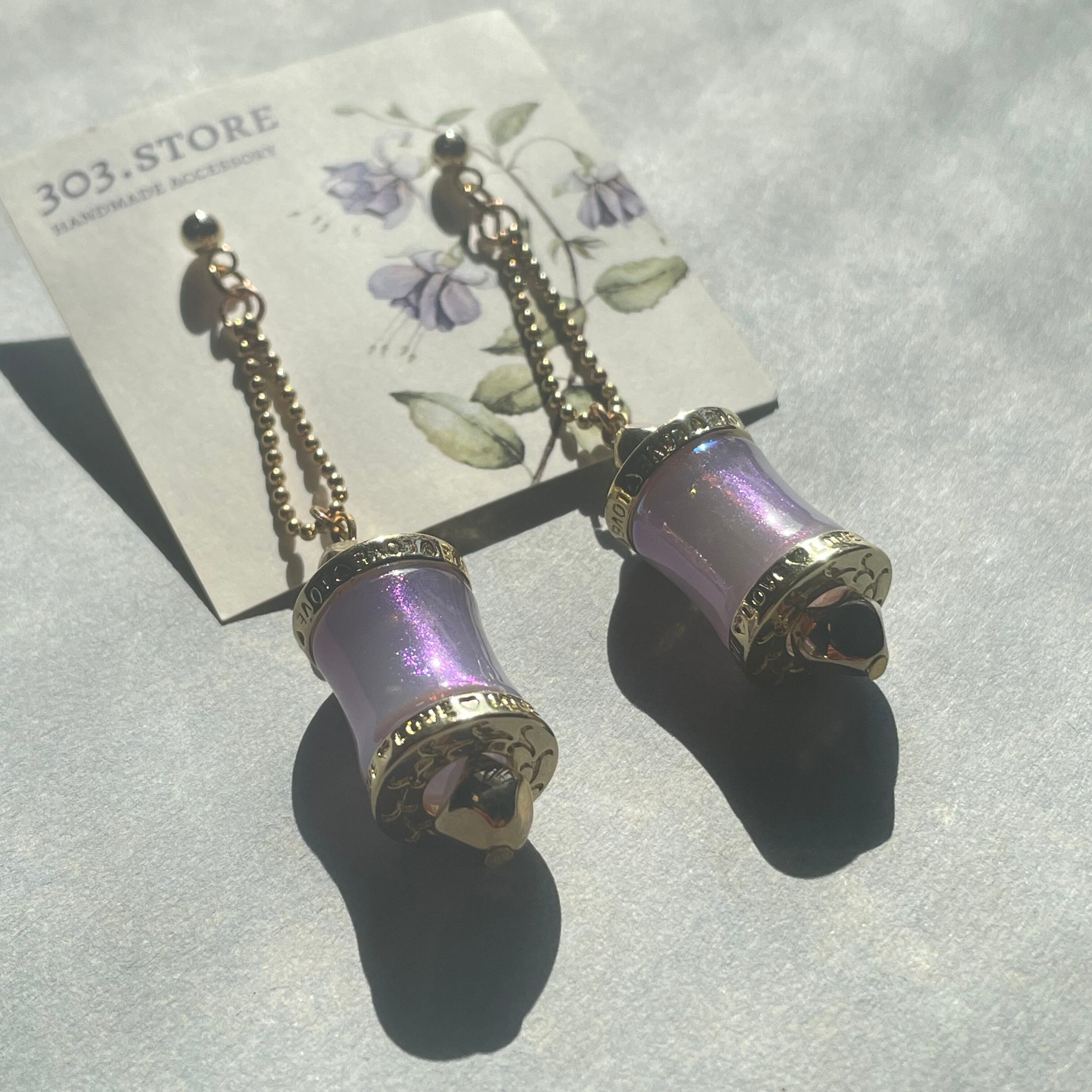 オーロラ 揺れる 円柱ピアス パープル 【1172】