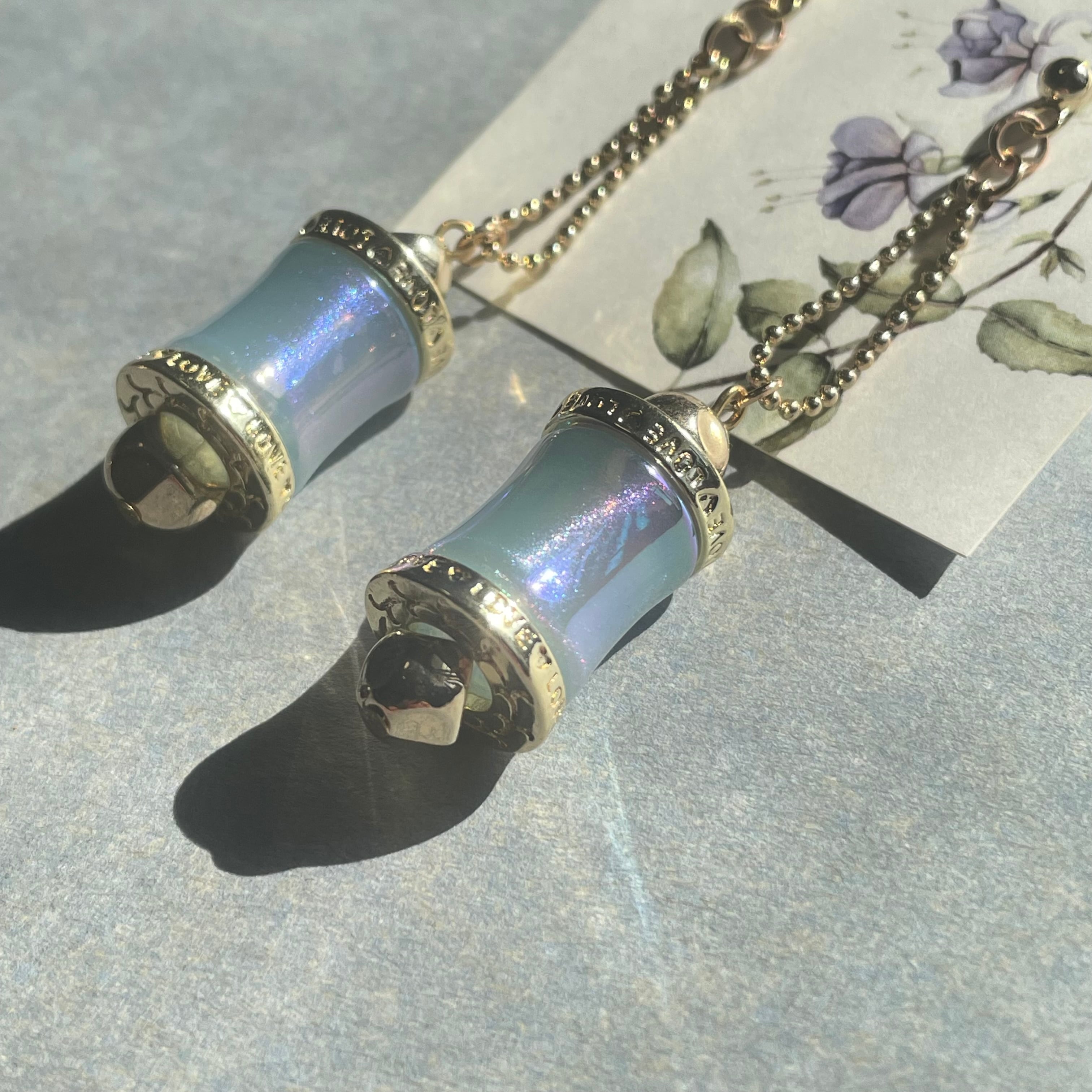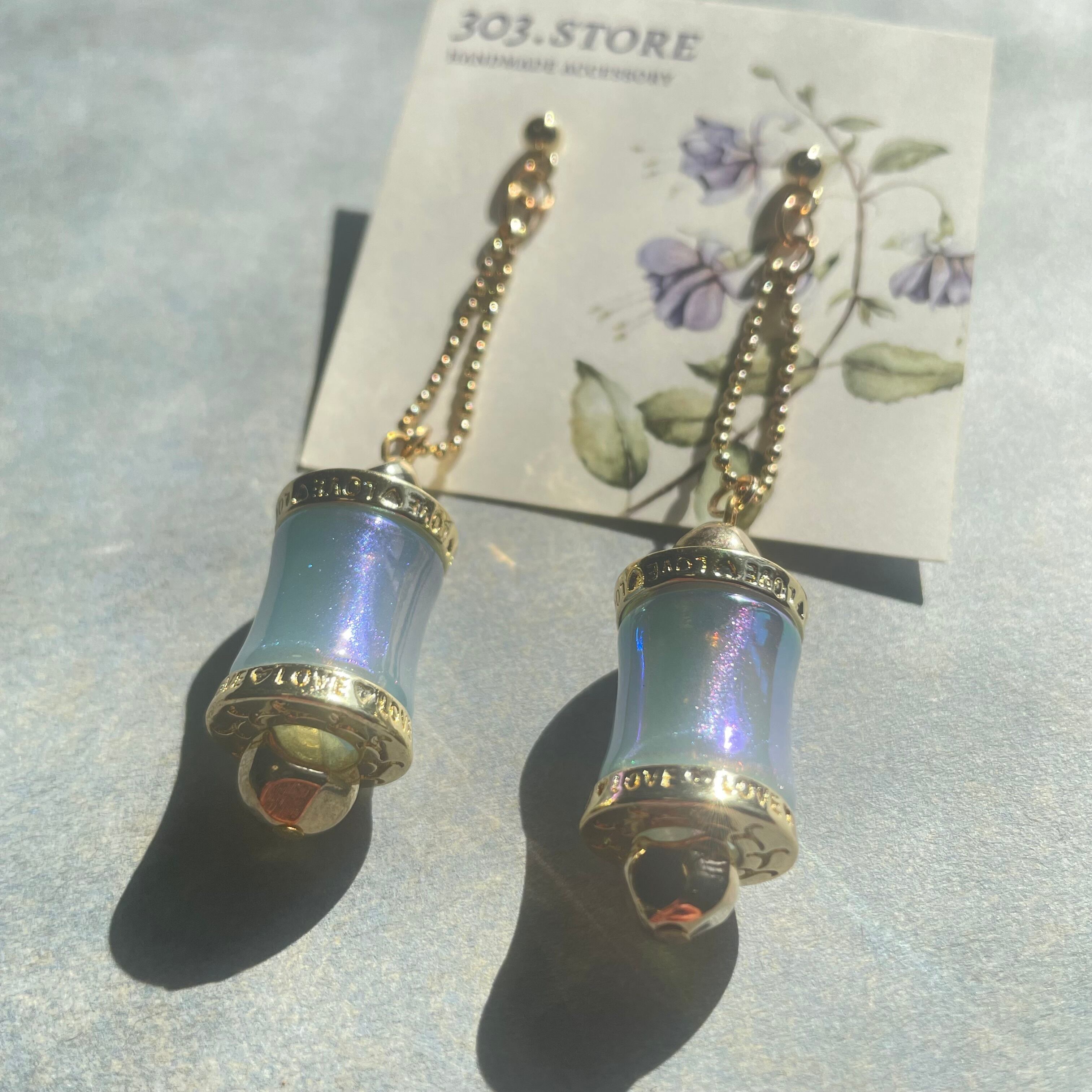 オーロラ 揺れる 円柱ピアス ブルー 【1174】